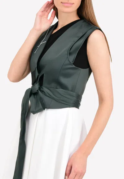 Embroidered Waistcoat With Waist Belt In Green