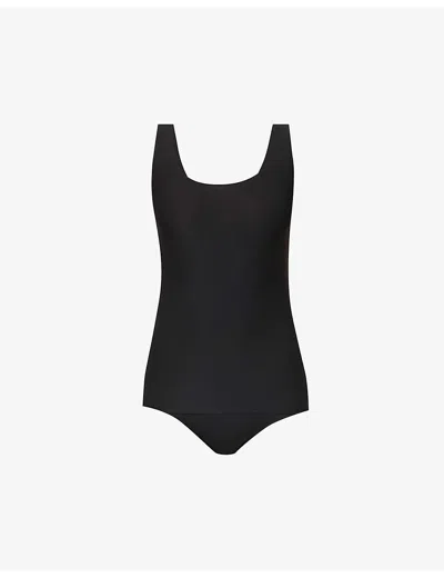 Womens Black Soft Stretch Scoop-neck Stretch-woven Top