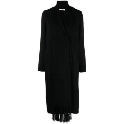 Long Black Wool Coat With Decorative Buttons And High Collar