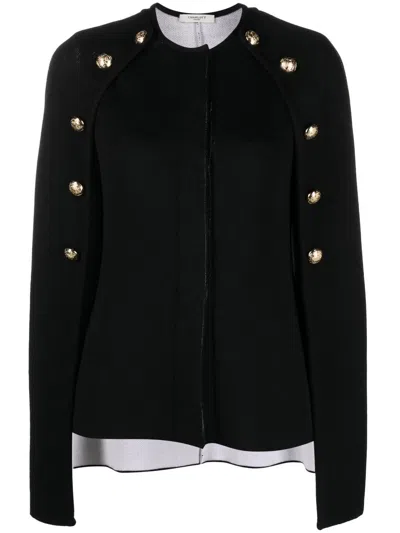 Tailored Blue Coat With Structured Collar And Distinctive Button Detail In Black