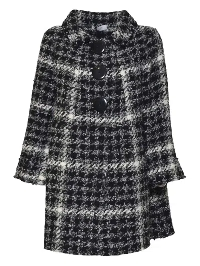 Textured Plaid Mid-length Jacket With Structured Collar In Brown