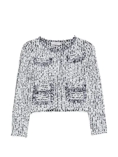 Textured White Cotton Jacket With Fringe Trim In Multi