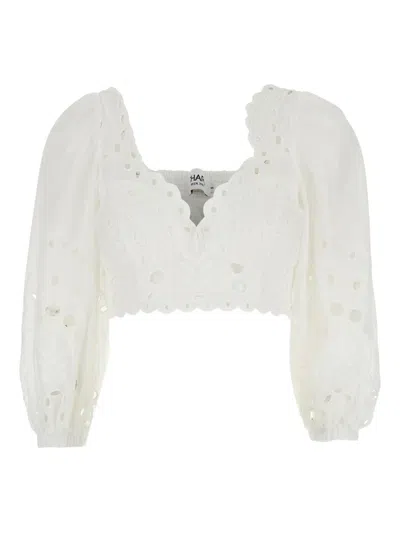 'goldie' White Top With V-neck On The Front And Perforated Design