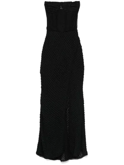 Sagitta Cold-shoulder Shirred Cotton-blend Voile Maxi Dress In Black