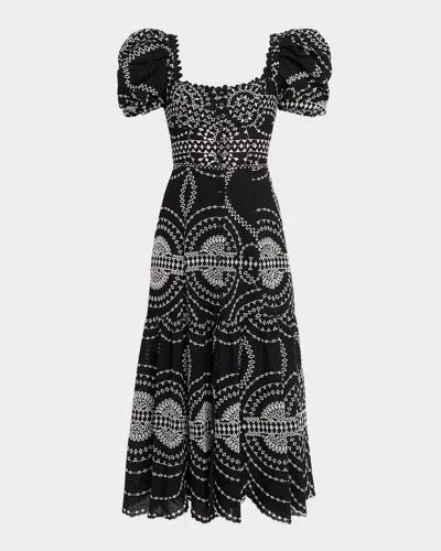 Kaysa Embroidered Midi Dress In Black