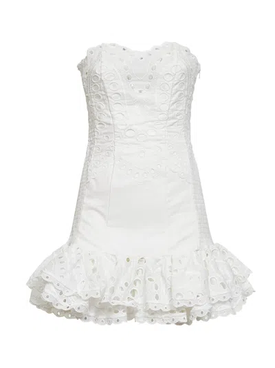 White Embroidered Cotton Blend Salty Bustier Mini Dress
