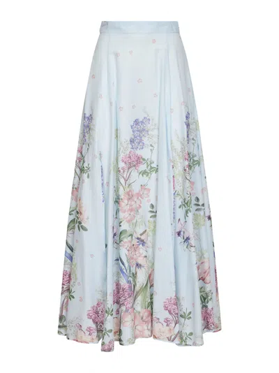 Light Blue Printed Cotton Blend Ventine Long Skirt