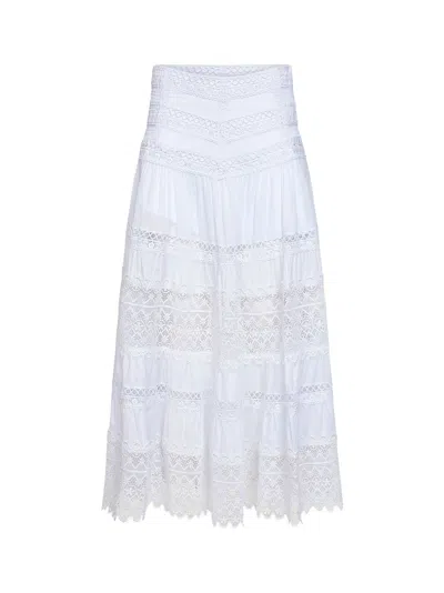 Sail White Skirt With Trapezoide Design And Scalloped Hem In Cotton Blend Woman