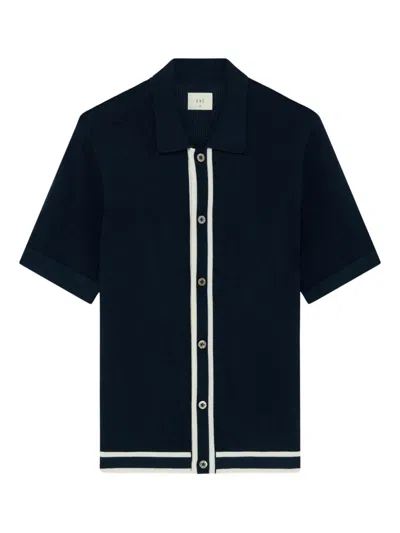 Mens Navy Jorge Button-through Knitted Polo Top In Blue