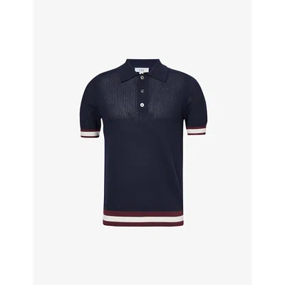 Mens Navy Quinn Stripe-trimmed Cotton-knit Polo Shirt In Navy Fabric