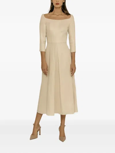 Square-neck Pleated Midi Dress In Neutral
