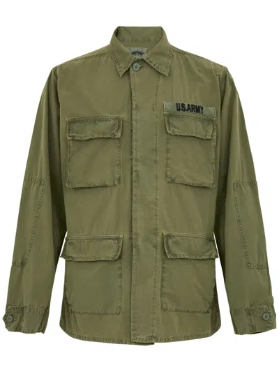 Khaki Jacket With Contrasting Corduroy Collar In Brown