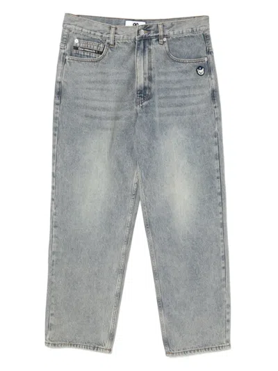 标贴直筒牛仔裤