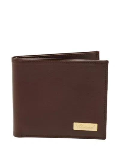 Pre-owned Brown Leather Logo Bifold Wallet And Rollerball Pen Set