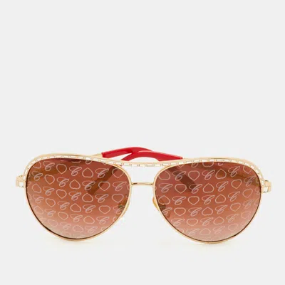 Pre-owned Gold Tone/pink Gradient Crystal Sch8070 Special Edition Aviator Sunglasses