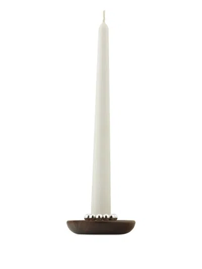 Perles Wooden Candle Holder In 银色