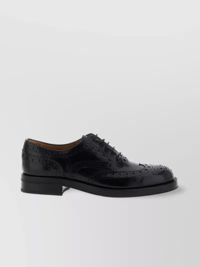 Lace Up Leather Shoes With Brogue Detailing In Black