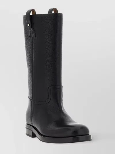 Mid-calf Flat Sole Boots With Textured Leather In Black