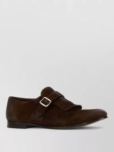 Shanghai Suede Monk Shoes Buckle Detail In Brown