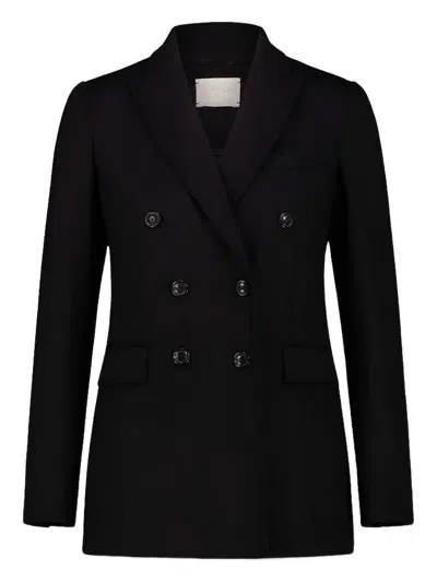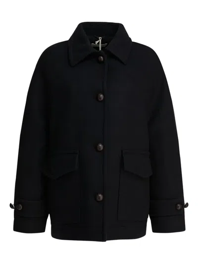 Double-breasted Flap-pockets Coat In Black