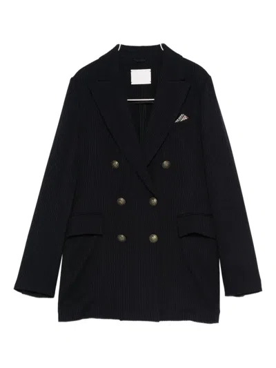 Pinstriped Double-breasted Coat In Black
