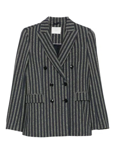 Striped Double-breasted Jacket With Vertical Stripes In Gray