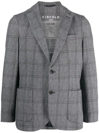 Single-breasted Checked Cotton Jacket In Grey