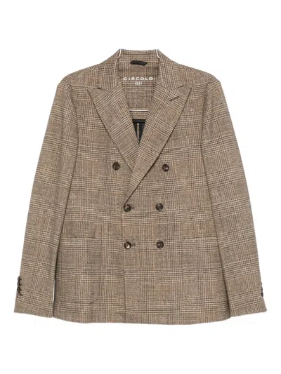 Beige Double-breasted Glencheck Blazer With Textured Finish In Neutral