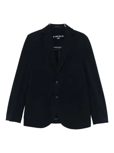 Tailored Navy Blue Blazer With Notch Lapel And Two-button Closure In Black