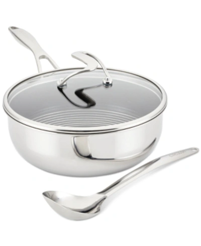 Steelshield C-series Tri-ply Clad Nonstick Chef Pan With Lid And Cooking Utensil Set, 3-piece, Silve In Silver