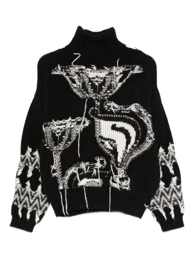 Patterned Roll-neck Sweater In Black