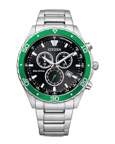 Eco-drive Men's Chronograph Black Leather Strap Watch 44mm