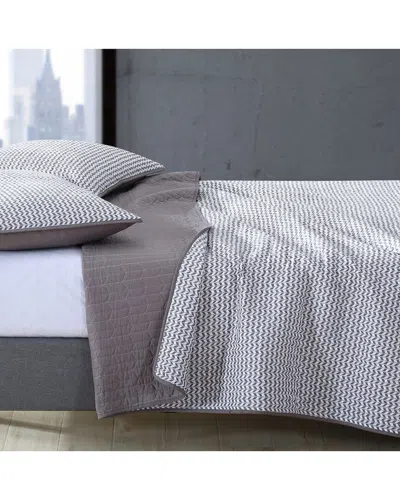 Leaves Of Cotton Reversible Quilt Set In Grey