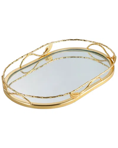 Oval Shaped Mirror Tray With Gold Leaf Design