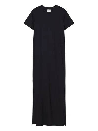 Tie-fastening Cotton Midi Dress In 黑色