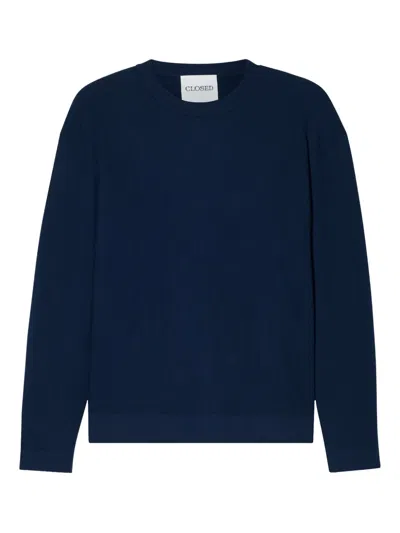 Navy Ribbed Knit Sweater With Crew Neckline In Blue