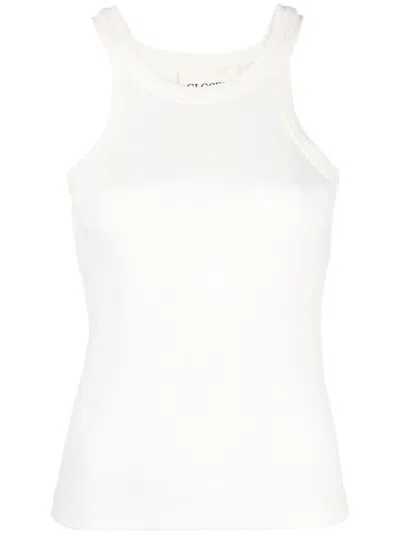Logo-embroidered Ribbed Tank Top In Neutrals