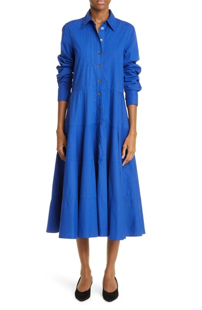 Patch-pocket Tiered Midi Shirtdress In Azure