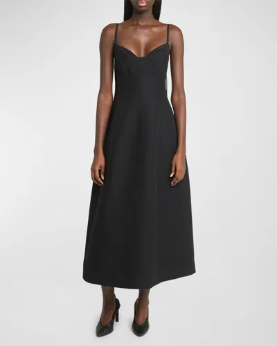 Plunging Sleeveless Midi Slip Dress In Chlate