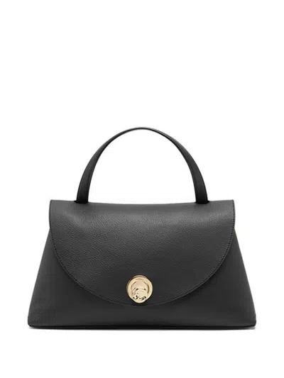 Structured Calfskin Shoulder Bag With Gold-tone Clasp In Black