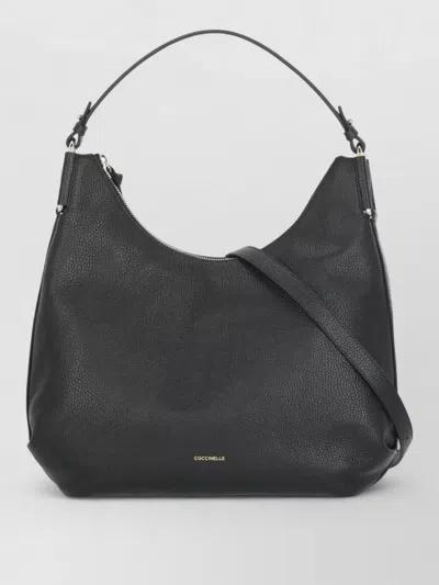 Pebbled Leather Shoulder Bag Removable Strap Handle In Black