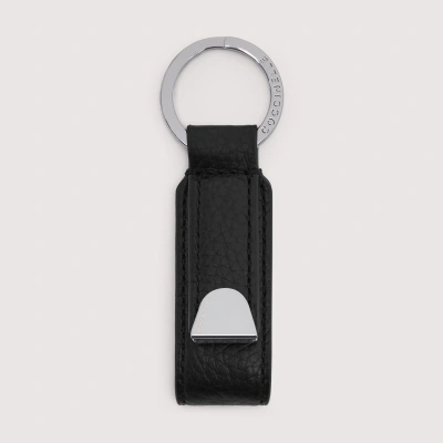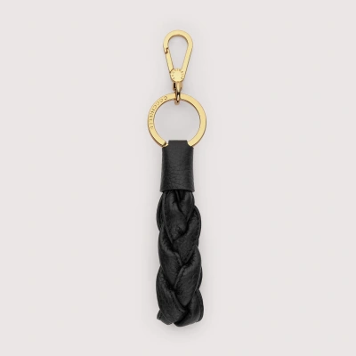 Grained Leather And Metal Key Ring Tassel In Noir