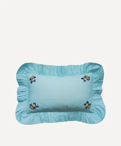 Augusta Embroidered Ruffled Oblong Cushion In Blue