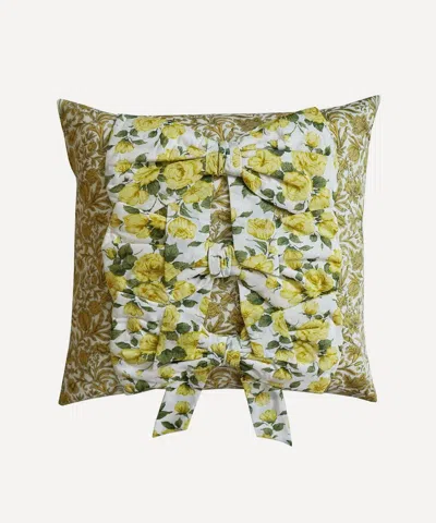 Sambourne And Carline Rose Bow Cushion In Yellow
