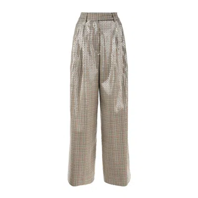 Cogo Check Patterned Wool Pants With Sequins In Nude