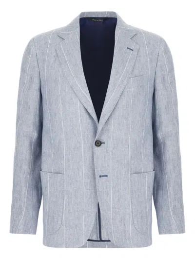 Linen Side Vents Notch Lapel 2-button Blazer In Blue
