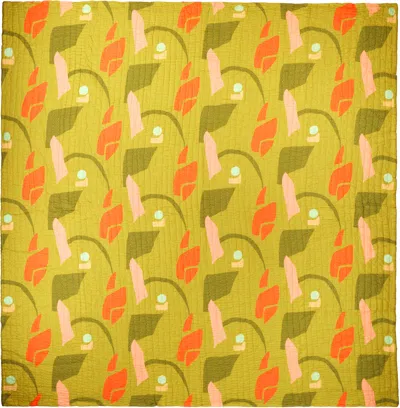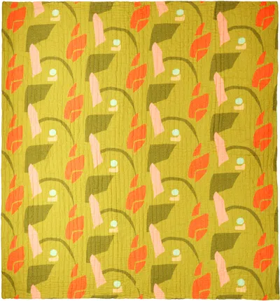 Green & Khaki Aviary Early Spring Late Summer Queen Quilt In Multi