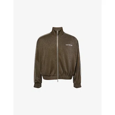 Mens Khaki Glitter Logo-print Woven Track Jacket In Brown