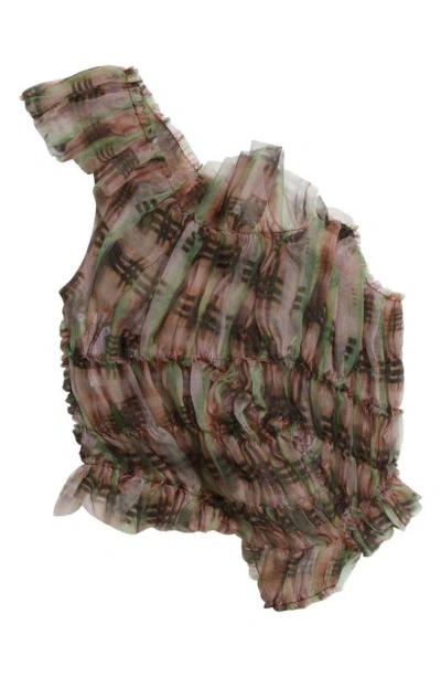 格纹荷叶边真丝雪纺上衣