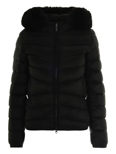 Piumino Lungo Con Pelliccia Sintetica Nero In Black